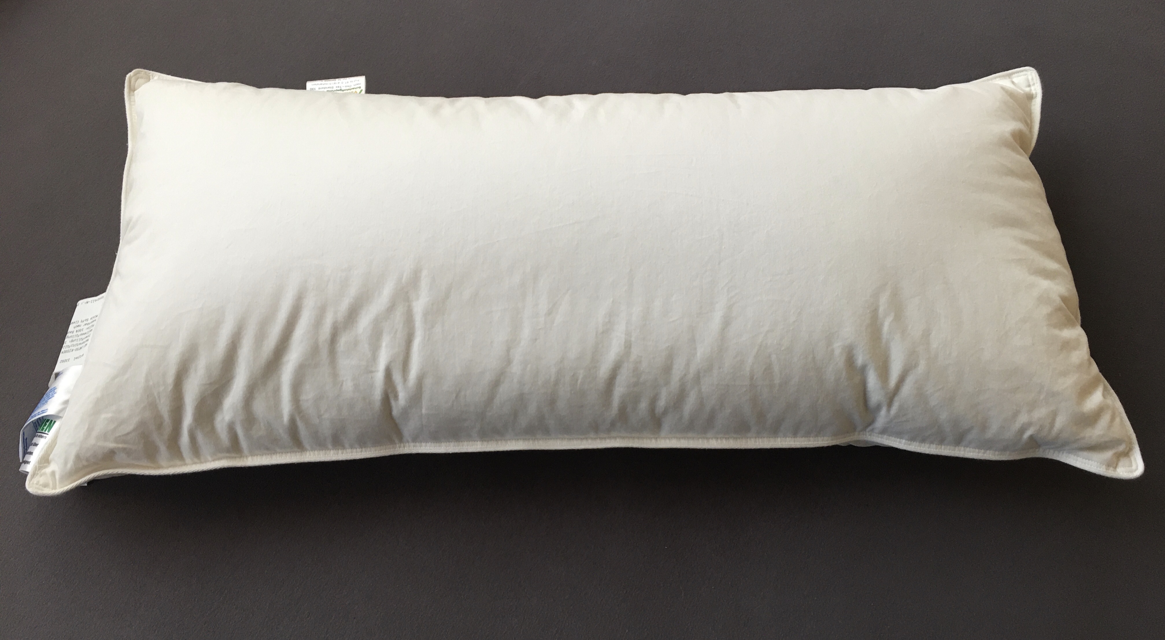 40/80, Hülle 100%Baumwolle 60°C waschbar und Trocknergeeignet, Kammer 1: Nackenstützfüllung mit RV individuell veränderbar 75gr. Polykugeln. Kammer 2: Innenfüllung 150gr. Gänsehalbdaunen. Kammer 3+4: Wellnessfüllung (Topper) 2x 75gr. Daunen.
