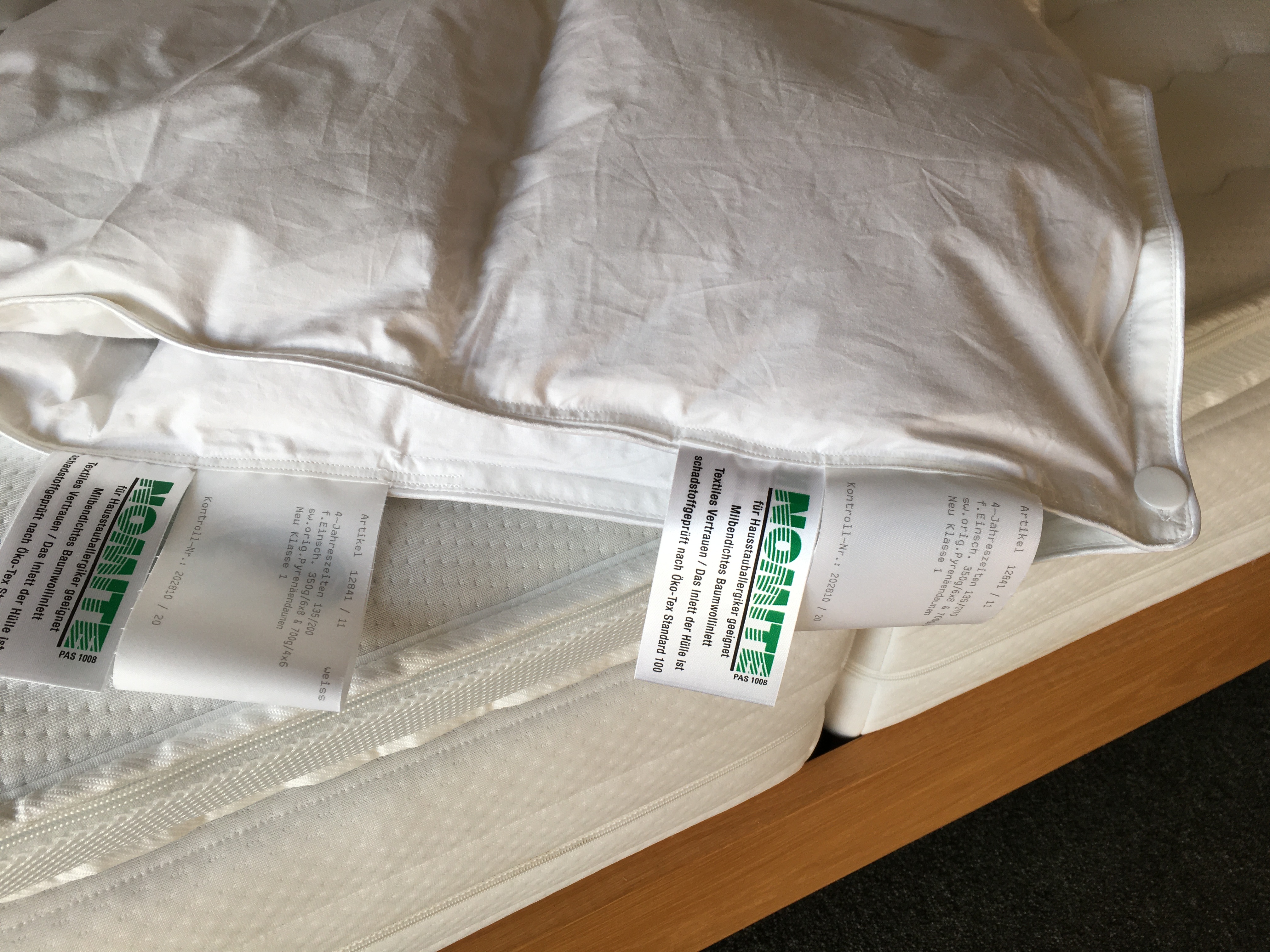 Alle Inletts sind milbendicht, d.h. die Inletts sind so fein gewebte, das Milben nicht in die Bett Ware eindringen können.