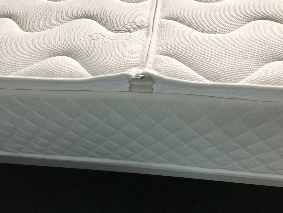 Die Oberplatte ist mit rundum Reisverschluss abnehmbar und mittig geteilt und lässt sich somit in der eigenen Waschmaschine bei 60°C waschen.
